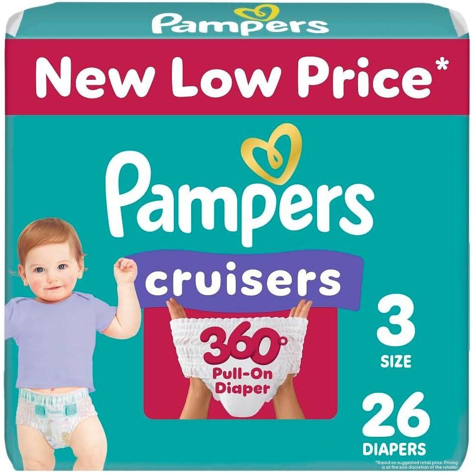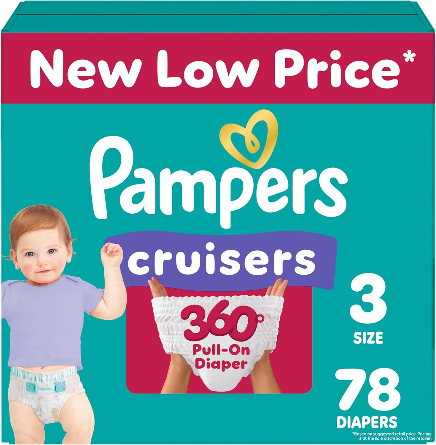 Pampers Diapers – Cruisers 360 – Size 6, 104 Count, Babyproof up to 100% Leakproof Pull-On Diaper(Size 3)