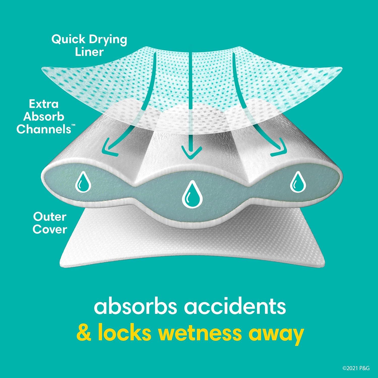 When it comes to potty accidents, your toddler will be covered with up to 100% leakproof protection. To protect where leaks happen most, Pampers Easy Ups are made with Dual Leak-Guard Barriers around the leg cuffs while Extra Absorb Channels quickly work to absorb accidents and lock them away from your toddler's skin. And when it's time to take them off, Easy Tear Sides make removal and disposal a cinch.